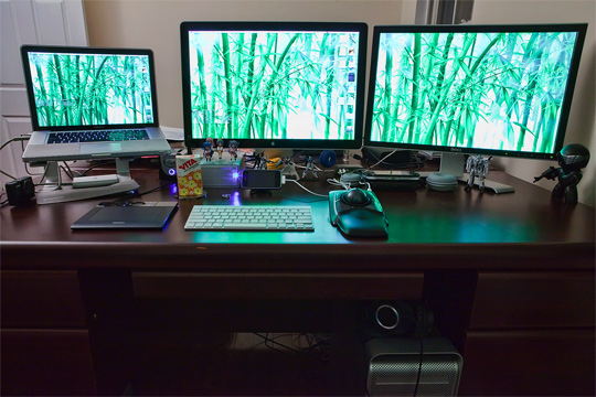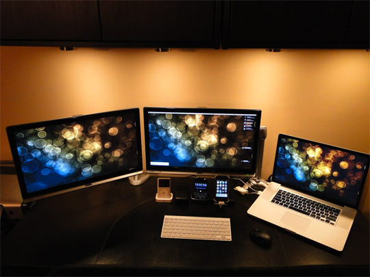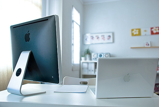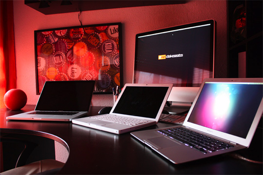 Bild #3 Zeigt nen billiges MacBook (netma MacBook Pro) und nen Apple Cinema Display. Sieht nen bisschen aus wie bei mir auf der Arbeit, wobei mein MacBook Pro nen ticken stärker is