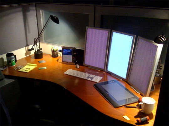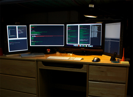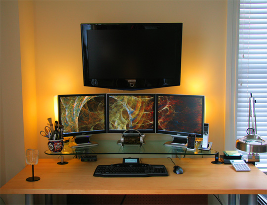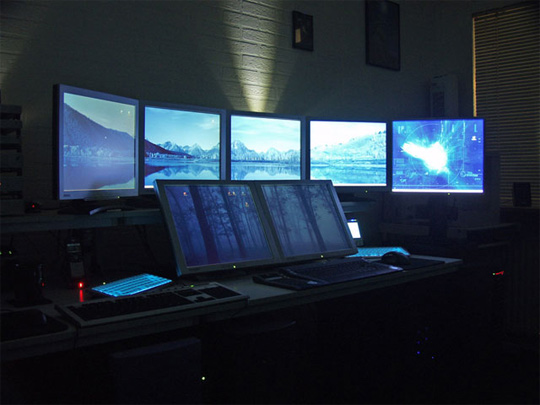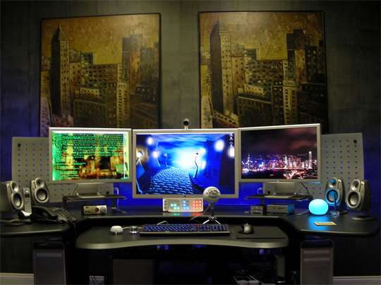 Oh gott, manche haben echt zu viele Bildschirme, aber wie aufgeräumt die das alles haben, hammer! :O