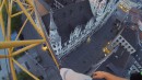 “James klettern auf einen Kran klettern in München!”