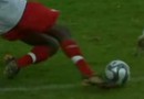 Is der behämmert oder was? Mit dem gestreckten Bein mit vollem Speed auf das ankommende Schienbein des Gegners. Das is ja schon ne Anzeige wegen Körperverletzung wert. Voll der Verletzungsvorsatz. Mit Erfolg. Das Bein sieht übelst aus.