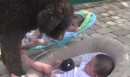 Zum Glück ist das kein abgerichteter Kampfhund, der würd die Babies aportieren.