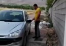 Starker Mann verbiegt Autotür.