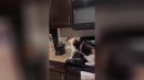 Warum lassen die ihre Katzen auch auf der Arbeitsplatte in der Küche herum rennen.