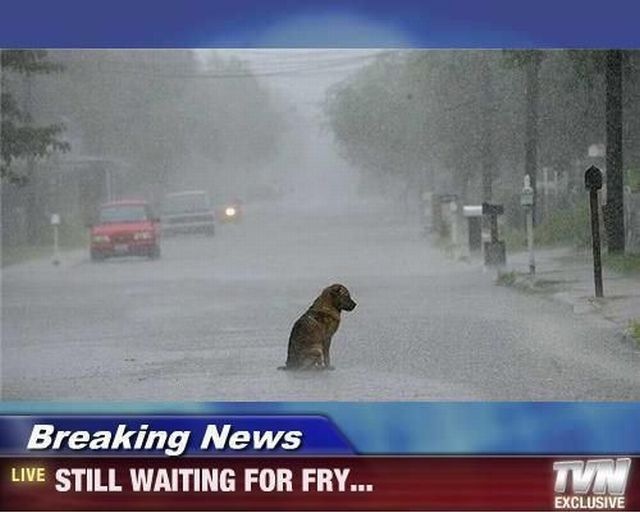 Fry muss sich doch beeilen, weil er seinen Hund vergessen hat abzuholen